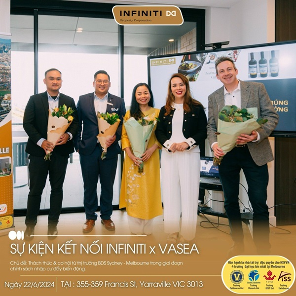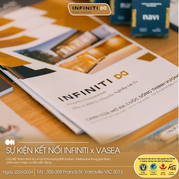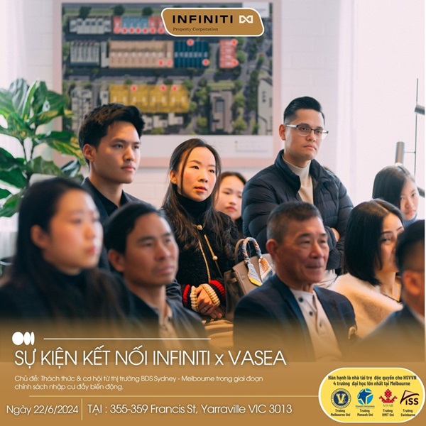 ⏰Vừa qua vào THỨ 7, 11AM – 2PM – NGÀY 22/6/2024, TẠI : 355-359 Francis St, Yarraville VIC 3013 sự kiện kết nối INFINITI x VASEA🔸Với chủ đề: Thách thức & cơ hội từ thị trường BDS Sydney – Melbourne trong giai đoạn chính sách nhập cư đầy biến động đã diễn ra thành công rực rỡ.