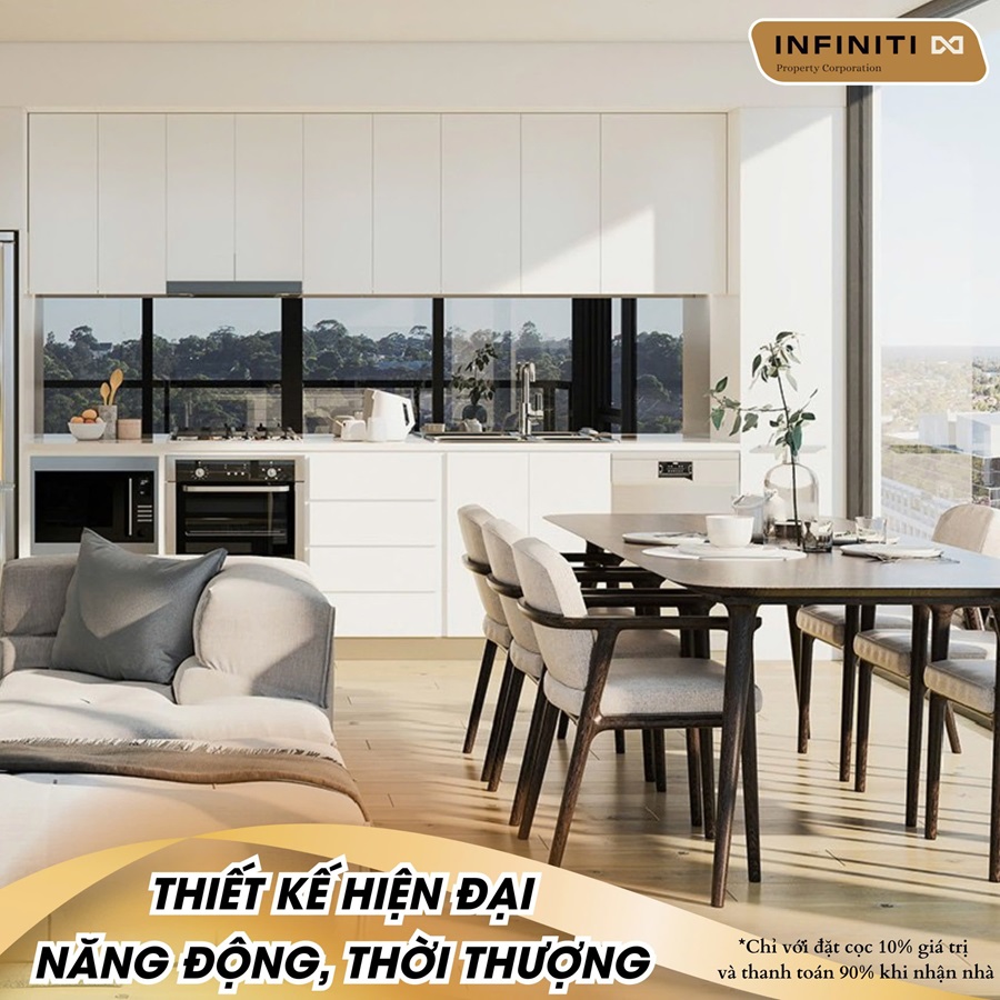 Phong cách sống hiện đại, thăng hoa cảm xúc: thiết kế lấy ánh nắng tự nhiên, không gian mở thoáng đãng với thiết kế căn hộ từ 1 PN đến 3 PN.